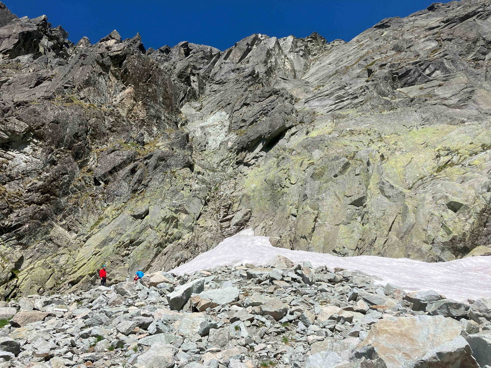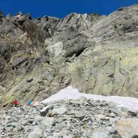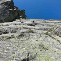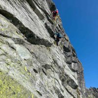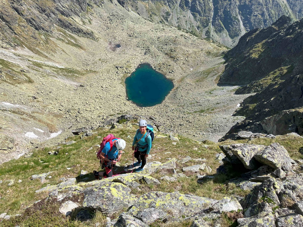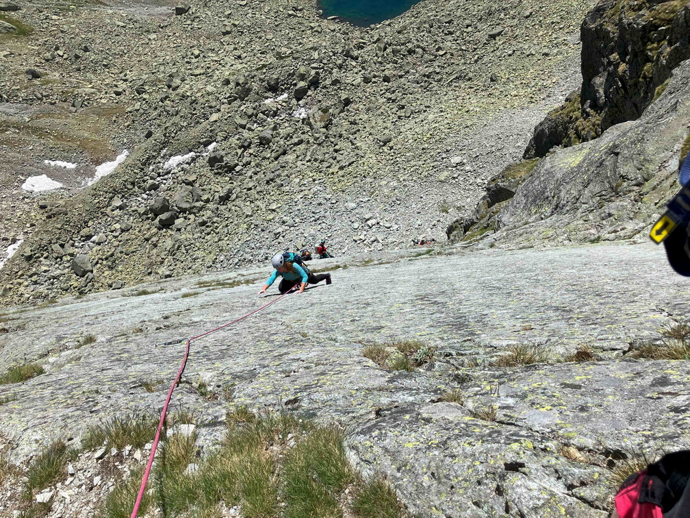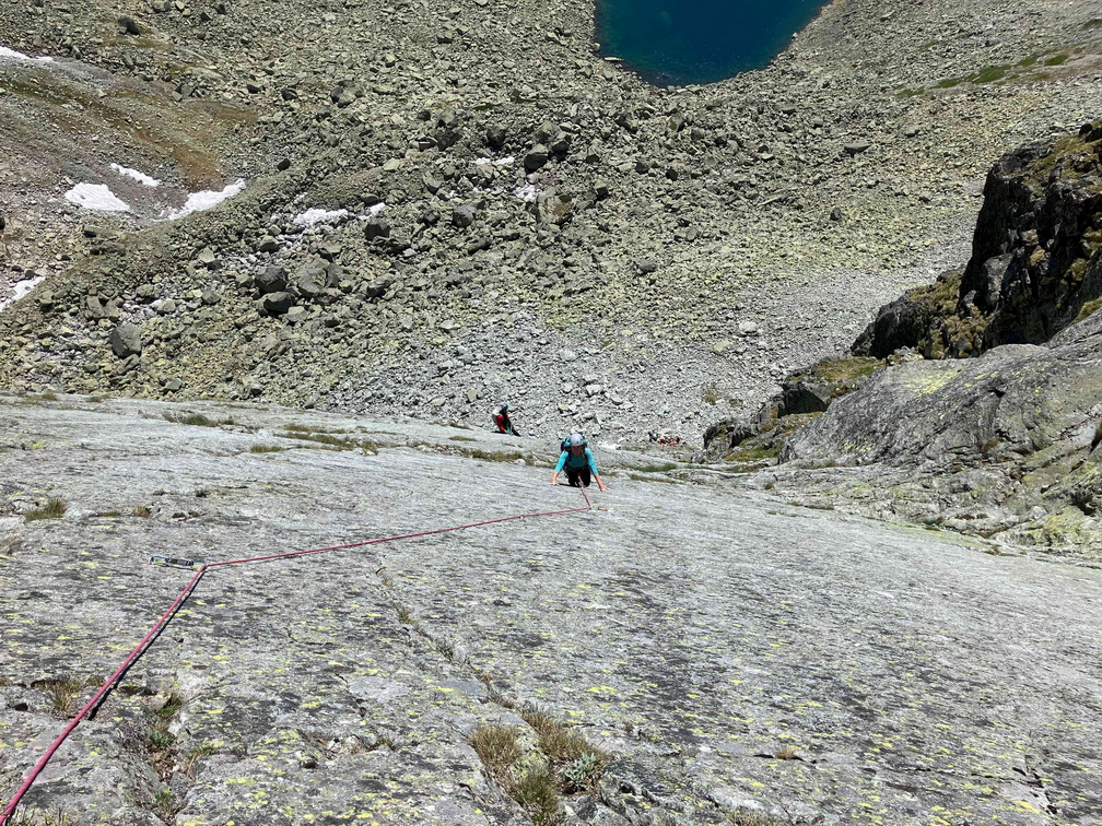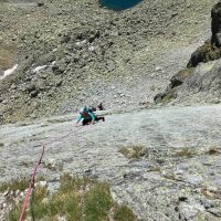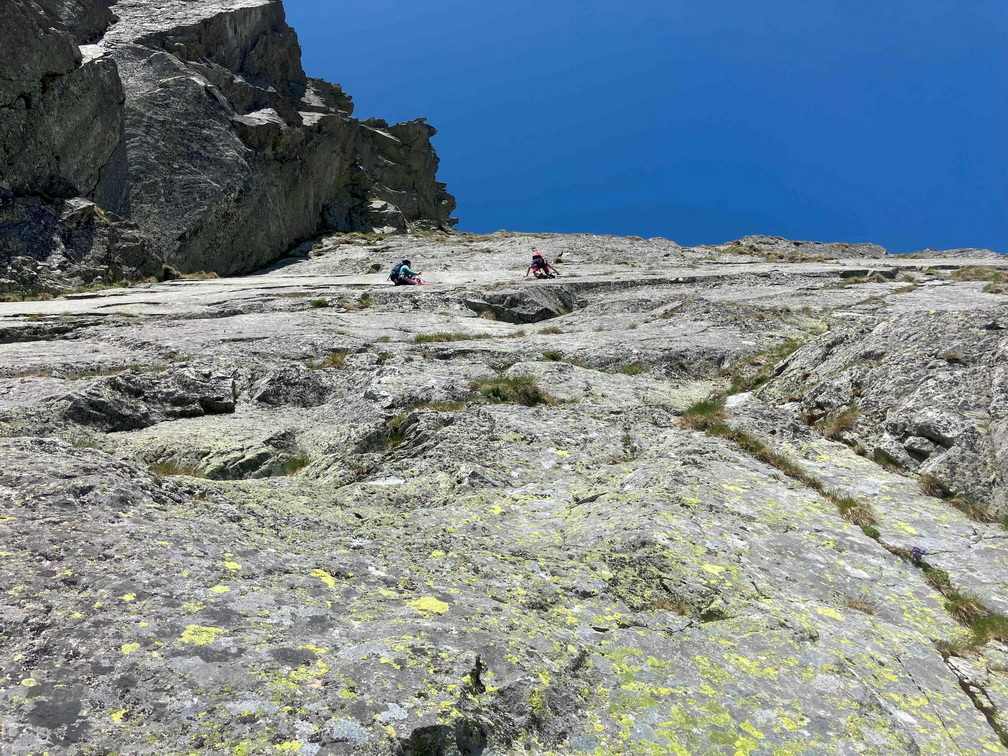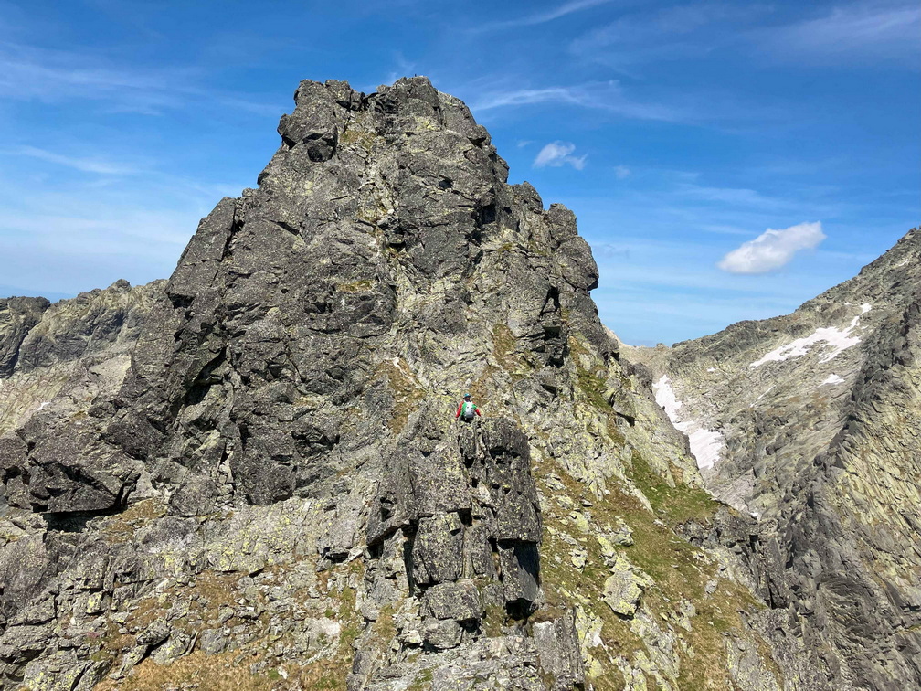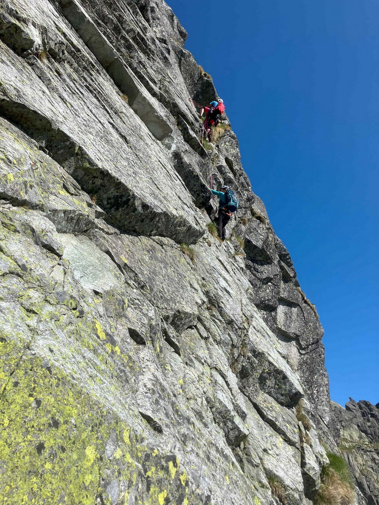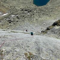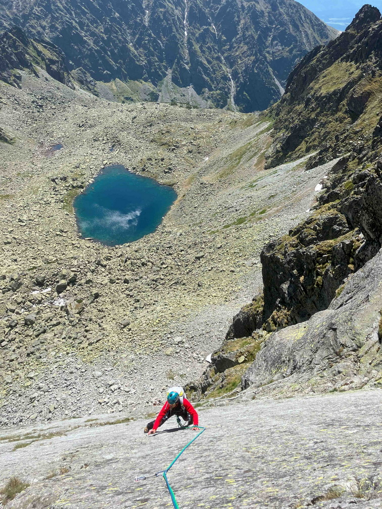 Dlhšie odkladaný prelez sa tretiu júnovú nedeľu stal realitou. V sobotu navečer sme sa presunuli na Popradské pleso (Monika, Jano, Martin a ja). Prespali a ráno o 6:40 vyrazili do Zlomiskovej doliny, neskôr odbočili do Dračej dolinky. Po únavnom presune pomedzi haldy kameňa sme boli na nástupe pod stenou. Cesta má takmer 300m. Krásne platne, ako z panelárne, 7 dĺzok obtiažnosti 5+, dve posledné sú také dolezové na hrebenň (za 2). Nič podobné som zatiaľ v Tatrách neliezol. Miestami súperil strach s adrenalínom, ale po cca 4 hodinách sme boli pod hrebeňom. Nasledoval prechod hrebeňa na Veľkú kôpku a zostup na chatu pod Rysmi.